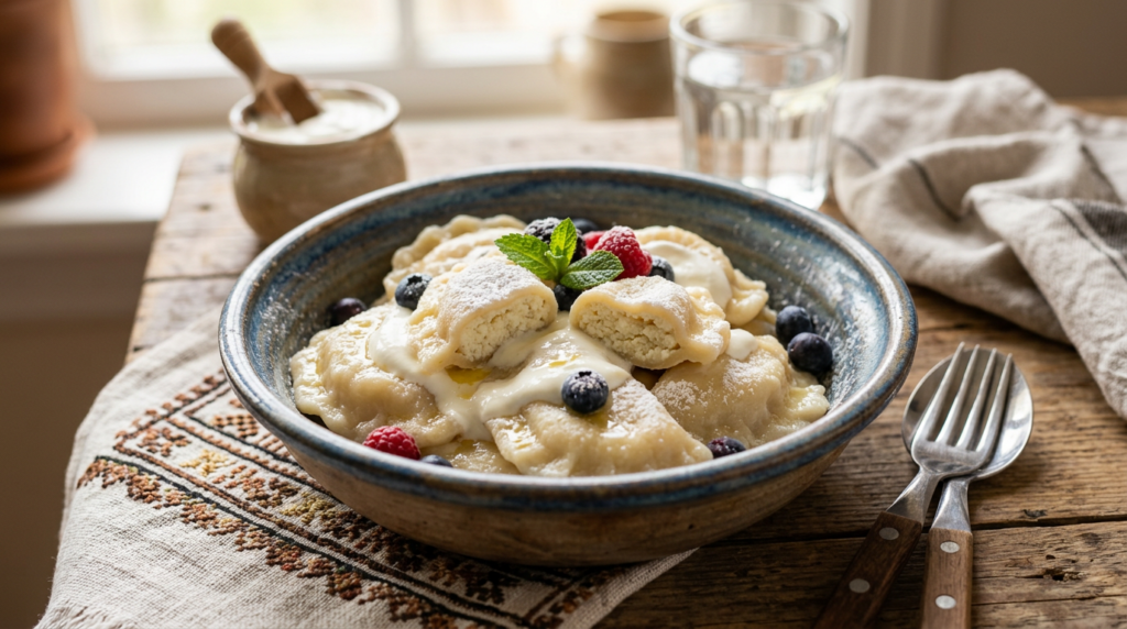 Сладкие или полусладкие — с сахаром в начинке или без, на ваш вкус; творог остаётся главным героем. Мягкая структура, дети едят охотно. Завтрак, перекус или лёгкий ужин — универсально. Со сметаной, с вареньем или с мёдом раскрываются по-разному — один продукт, несколько настроений. В морозилке держатся хорошо — удобная сладкая запасная опция.