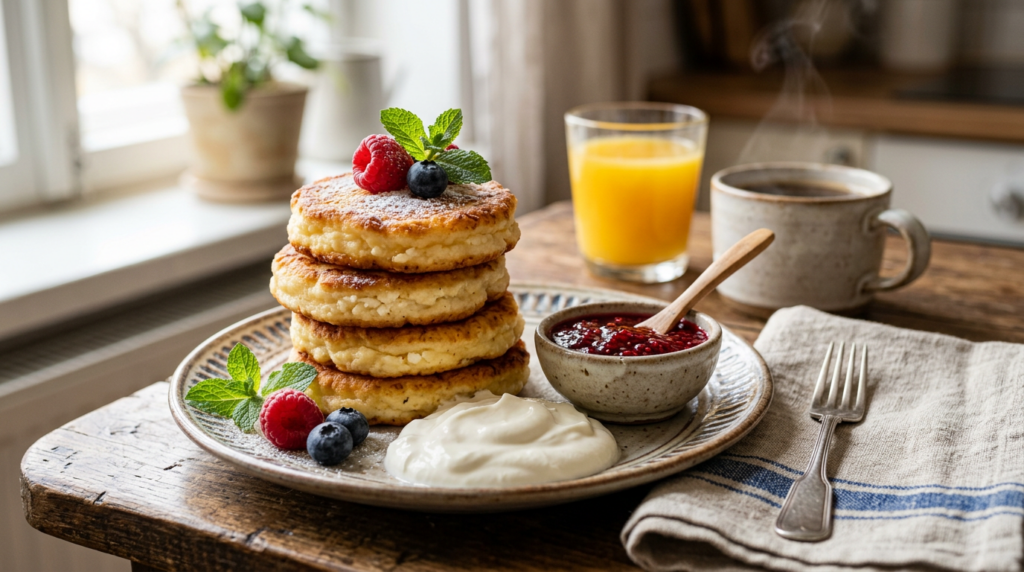 Золотистая корочка, нежный творог внутри — завтрак, который не надоедает. Со сметаной, с джемом, с мёдом — три разных блюда из одного продукта. Готовить с нуля долго; взять готовые сырники — экономия утра. Дети едят без уговоров — знакомый вкус. Заморозка позволяет не зависеть от срока годности «свежего» творога в холодильнике.