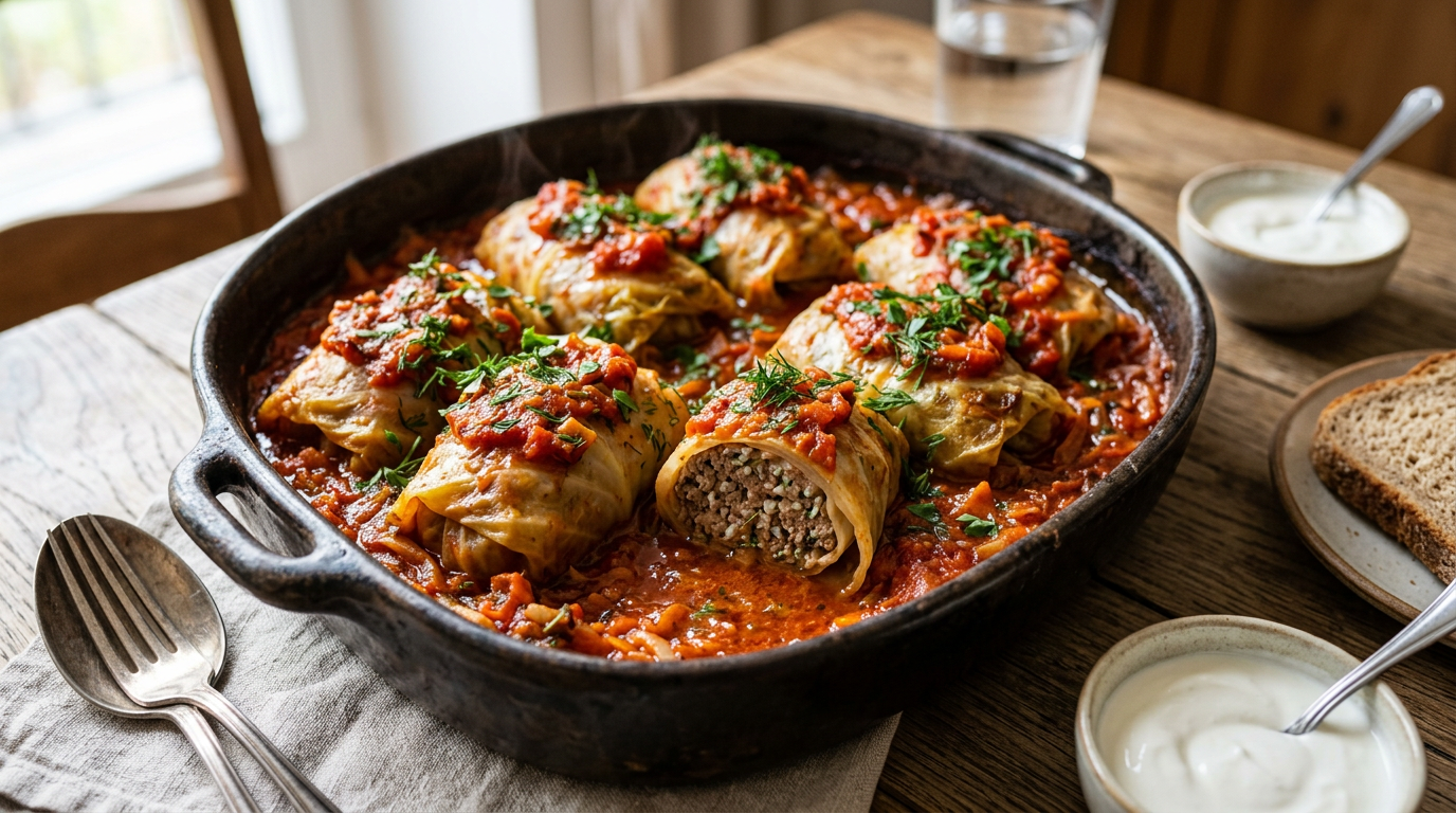 Говяжий фарш делает вкус насыщеннее и чуть «дороже» по ощущению — без лишней жирности свинины. Для тех, кто любит красное мясо в любых формах. Подойдут к праздничному столу в глиняном горшочке или противне. Разогрев в духовке под соусом восстанавливает «только что из печи». Заморозка сохраняет структуру капусты и сочность начинки.